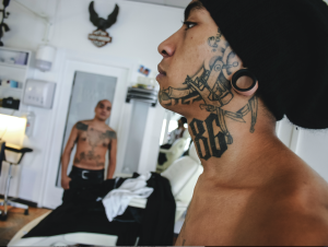 Ik ging op een gegeven moment op zoek naar de familie van de jongens die ik hier had leren kennen. Die kwamen uit Zuid-Amerika. En ik wilde naar de roots van gangs, Amerika. Dat werd mijn volgende gebied. Ik kwam erachter dat etnisch profileren gerelateerd is aan gangs. In LA kreeg ik meteen fuck the police, die woede. In Zuid Amerika draait het om afbakenen van jouw gebied met honden en wapens, zodat je nog iets voor jezelf heb. Ik kreeg vaak genoeg als welkom een wapen op me gericht. Maar ik kon daar doorheen kijken, het was hetzelfde principe als wat mijn neven en ik deden in onze wijk: verdedigen van ons gebied, zodat dat je ook niet afgepakt kan worden. Al die gangs hebben ook allemaal dezelfde manier van welkom heten: afschrikken. Dat betekent: welkom in ons territorium.